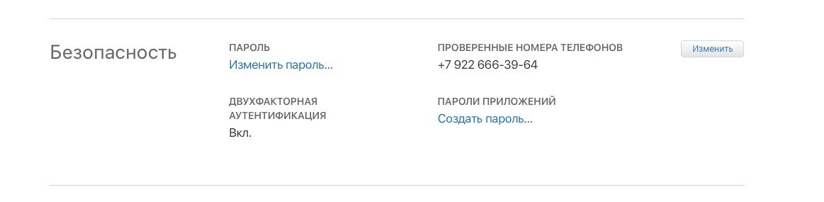 Войдите в личный кабинет Apple ID https://appleid.apple.com/account/manage, в разделе "Вход в учетную запись и безопасность",