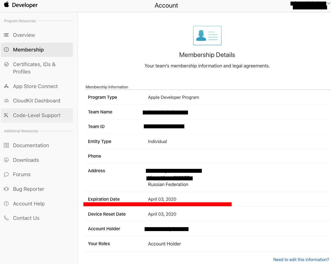 - Войдите в личный кабинет https://developer.apple.com и перейдите во вкладку "Membership", сообщите вашему менеджеру Team ID ,Team Name и Expiration date