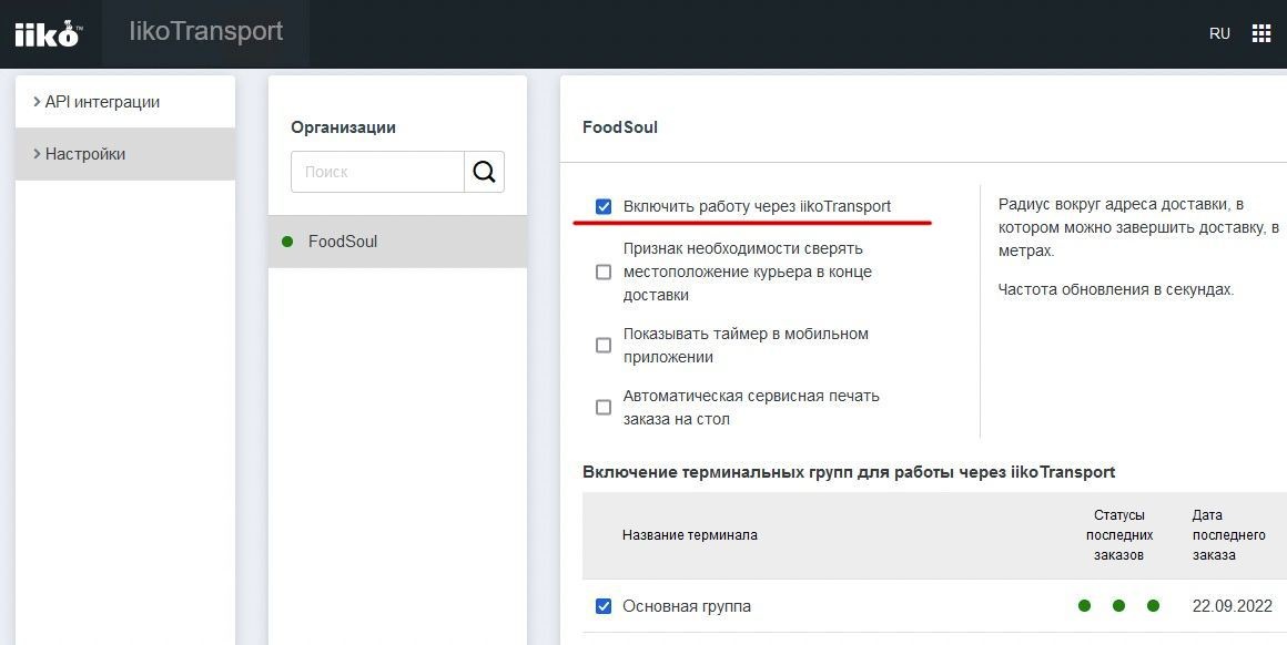 У Власному кабінеті FoodSoul увімкніть опцію Інтеграції → Автоматизація → Callback Api.
